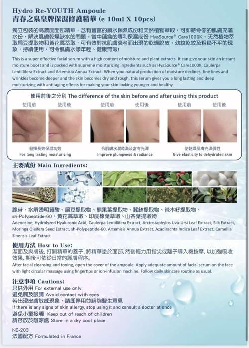 Neville hydro re-youth ampoule 青春之泉 保濕修護精華 1盒10支